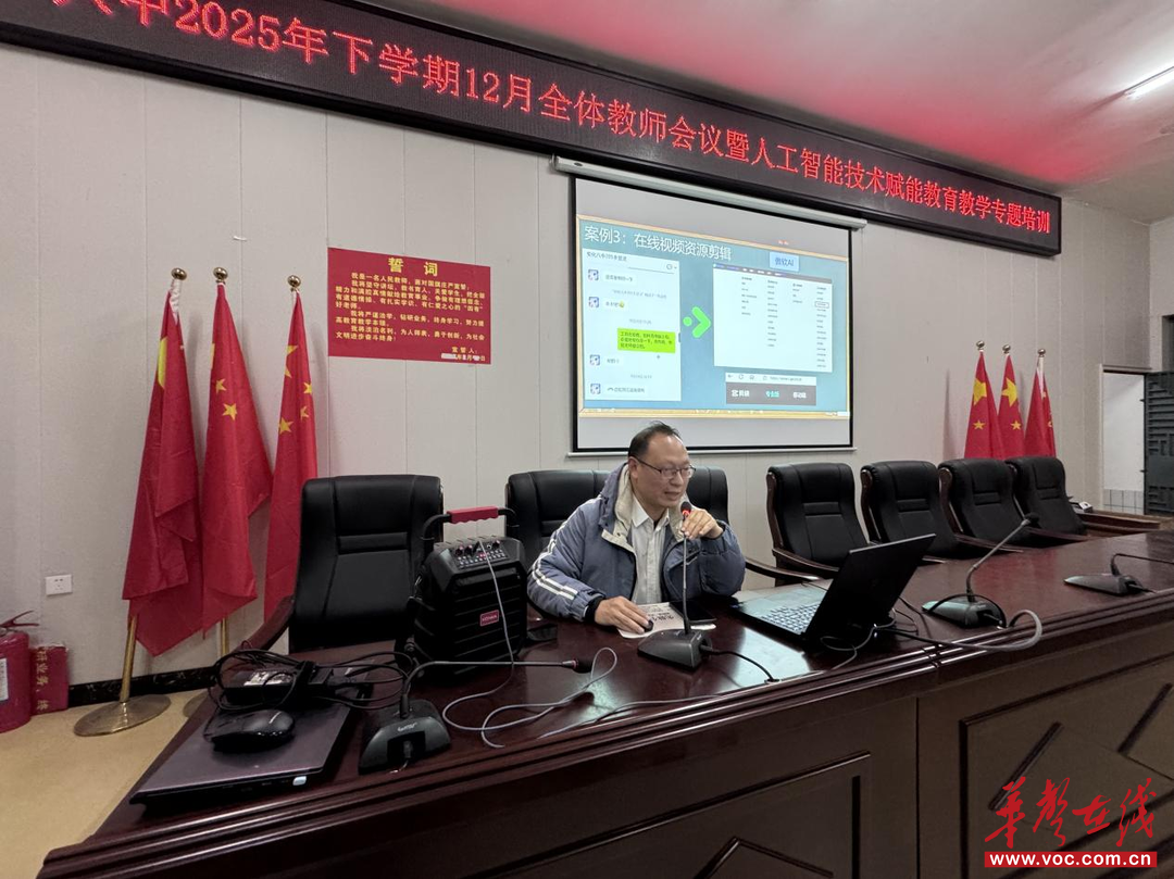 12月24日晚,学校同步开展两场专题培训,为教师发展赋能增效。在全体教师会议暨人工智能技术赋能教育教学培训中,学校信息技术高级教师姚林翼担任主讲。他精准分析了当前人工智能技术在教育教学领域的应用现状,结合教学实际操作场景,详细演示了如何运用不同AI软件高效制作课件、合成音频、剪辑视频等实用技能,并向大家推介了多款适配教学需求的AI工具。此次培训打破了传统教学模式的局限,进一步推动了学校人工智能技术与教育教学的深度融合,帮助教师掌握智能教学辅助手段,不仅助力提升教学效率,更引导教师将智能技术灵活运用于生活与工作的方方面面。