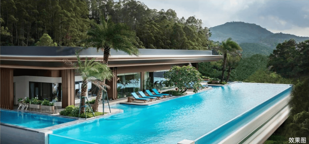 社区内部商业配套方面,项目规划建设1200㎡商业街和1.1万方底商,目前已完成主体结构建设,正在进行招商工作。商业街将引入便利店、生鲜超市、药店、美容美发等便民业态,满足业主日常购物、餐饮、休闲等基本需求;底商将规划引入特色餐饮、亲子教育、健身养生等业态,打造社区邻里中心。同时,项目还配套建设了约2000㎡的艺术会所,涵盖儿童乐园、静谧书吧、健身空间、无边际泳池等功能区域,为业主提供高品质的休闲娱乐场所。其中,无边际泳池位于社区三楼,采用恒温设计,全年开放,业主可在游泳的同时欣赏山景;儿童乐园设置了多种游乐设施,适合不同年龄段的儿童玩耍;静谧书吧藏书超5000册,为业主提供安静的阅读空间。